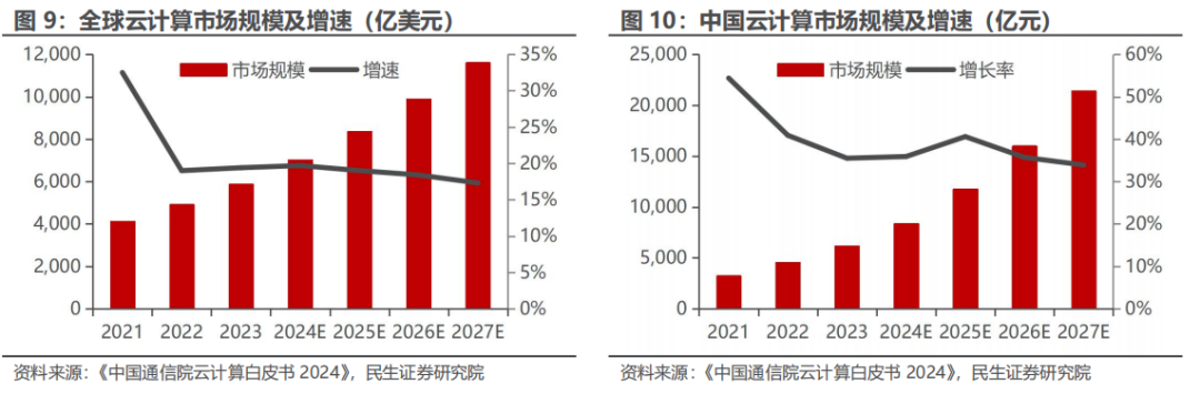 2023年2月27日,《数字中国开采全体布局筹备》明确提议“2522”框架,即夯实“两大基础”,强化“两大能力”,优化“两大环境”。笔据中国信通院《云计较发展白皮书》,2023年群众云计较市集规模5864亿好意思元,同比增长19.4%,受生成式AI和大模子需求推动,瞻望2027年突破万亿好意思元;2023年我国云计较市集规模6165亿元,同比增长35.5%,AI原生本事创新和企业策略养息推动增长。